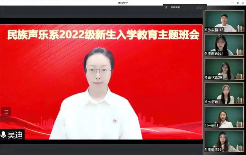 为贯彻落实辽宁省委教育工委、辽宁省教育厅《关于组织开展“喜迎二十大 奋进新征程”2022年秋季“开学第一课”活动的通知》和沈阳音乐学院《2022级新生入学教育活动方案》文件精神。民族声乐系高度重视,精心组织,坚持“育人为本”,弘扬鲁艺精神,积极引导新生适应大学生活、确立目标、培养品格、争做卓越时代新人,充分利用网络载体,有序高质开展新生入学系列教育活动。