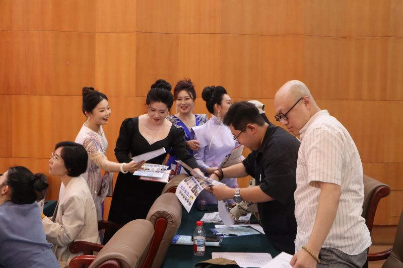 来自辽宁人民艺术剧院附属艺术学校、辽宁省合唱协会、沈阳奉天艺术学校、沈阳演艺集团(沈阳歌舞团)、盘锦丰艺辽河口文化艺术团有限公司、北京与爱为舞科技有限公司、沈阳笑点文化传媒有限公司、远哲(沈阳)教育咨询有限公司、沈阳艺家文化传媒有限公司、沈阳市于洪区寻找童声音乐艺术中心、芮兰文化传媒公司,共11家用人单位代表,学院招生就业处(创新创业中心)主任赵美、科长都巍出席招聘会。民族声乐系领导班子成员,各教研室主任、毕业年级主教教师、辅导员和2025届毕业生参加会议。会议由民族声乐系副主任柴玲主持。