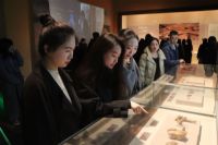 参观过程中,师生们驻足凝视,仔细聆听文物背后的故事。查海遗址的石碓龙以原始图腾的形态,记录了早期先民对龙文化的共同信仰;红山文化玉器则以精湛工艺彰显了跨地域的文化共鸣。