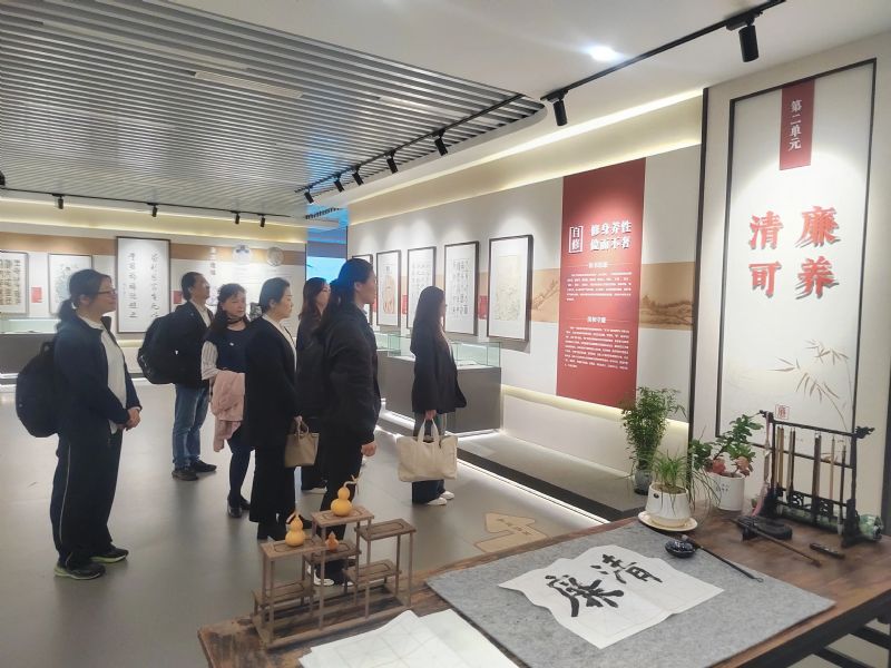 活动中,师生党员首先参观“廉脉相承 —— 中华优秀传统廉洁文化展”。馆内以铜镜、拓片、玉器、瓷器、书画、古籍等为载体,系统呈现中华传统廉洁文化深厚底蕴。廉洁书画作品诠释廉洁精神内涵,铜镜等展品警示规范言行,引导党员师生从中华优秀传统文化、革命文化和社会主义先进文化中汲取精神力量。