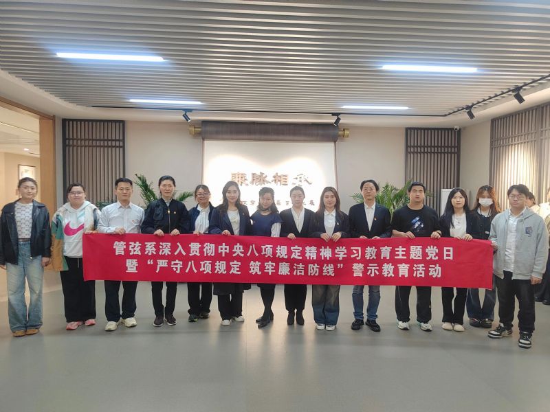 为扎实开展深入贯彻中央八项规定精神学习教育,持续推进作风建设常态化、长效化,弘扬新时代廉洁文化。5月14日,管弦系党总支与钢琴系党总支、民族声乐系党总支,组织师生党员及入党积极分子赴大东区“廉心雅苑”廉洁文化互动体验馆开展主题党日活动。