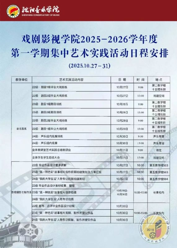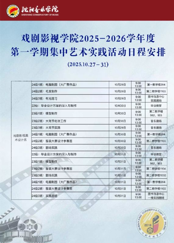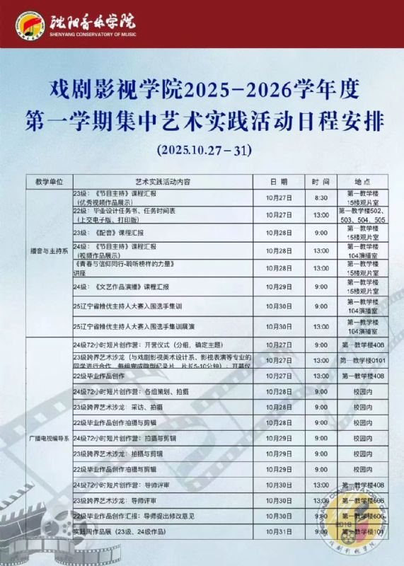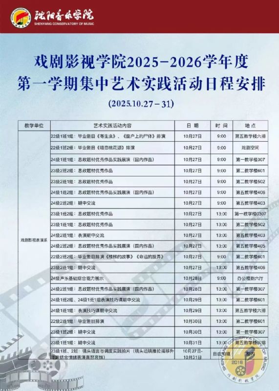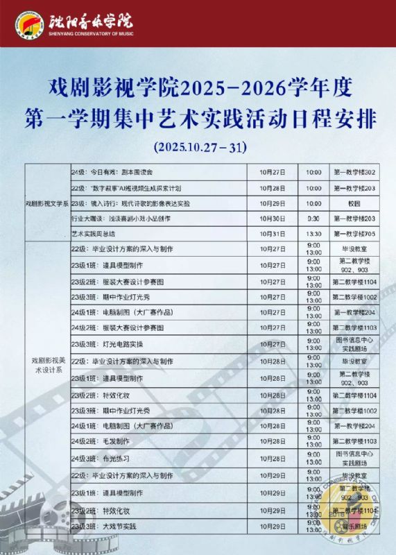 戏剧影视学院2025学年度秋季学期艺术实践周活动日程安排
