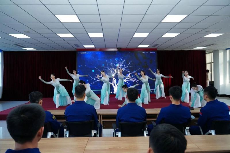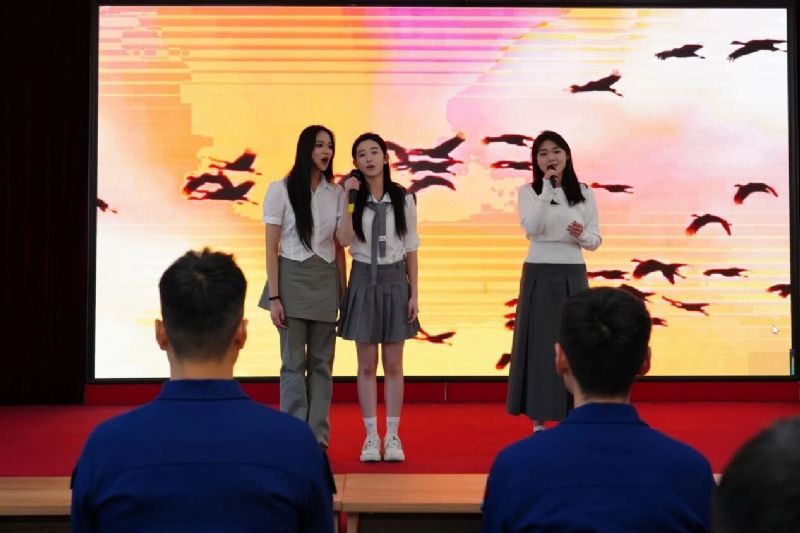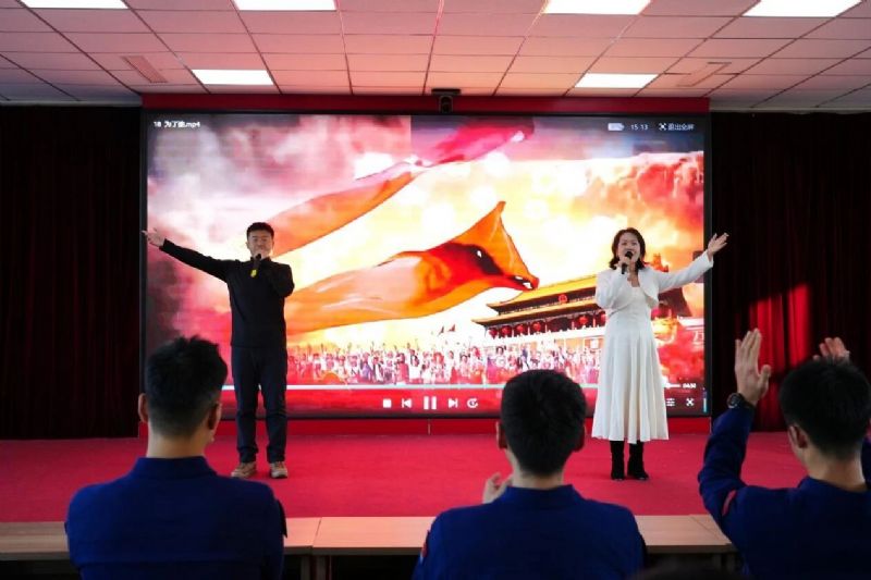 教师张瀚、杨韵秋联袂献唱《为了谁》,以磅礴深情的歌声致敬无名英雄,生动回答了“为了谁”的深刻命题,唱响了“谁最美”的时代赞歌。舞蹈《小鸟睡在我身边》惊艳登场,舞姿流畅而富有感染力,用肢体语言实现了形、情、乐三者合一。教师侯国辉带来男声歌曲串烧《疼爱妈妈+当那一天来临》,从对母爱的深情倾诉,到对军人保家卫国的赞美,将家国情怀融入音乐表达。演出在气势恢宏的《强军战歌》中落下帷幕,台上台下齐声歌唱,节奏铿锵,为演出画上了圆满的句号。