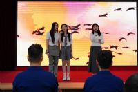 爵士舞《Guaya》以自由奔放的节奏、活力四射的舞姿展现了青年学子们的自信与活力。“看人生匆匆,愿我们同享光荣,愿我们的梦永不落空”教师荆宗带来歌曲串烧《水手+给所有知道我名字的人》,瞬间点燃全场观众热情,铿锵有力的节奏引发大合唱,雷鸣般的掌声与欢呼声将气氛推至顶点。男女声二重唱《落叶归根》旋律深沉,情感绵长,唱出了游子对故土的深切眷恋。“有人放烟花,有人追晚风”女声三重唱《世界赠予我的》如清风拂面的天籁,和声纯净悠扬,温暖治愈的嗓音深深打动了在场每一位观众。