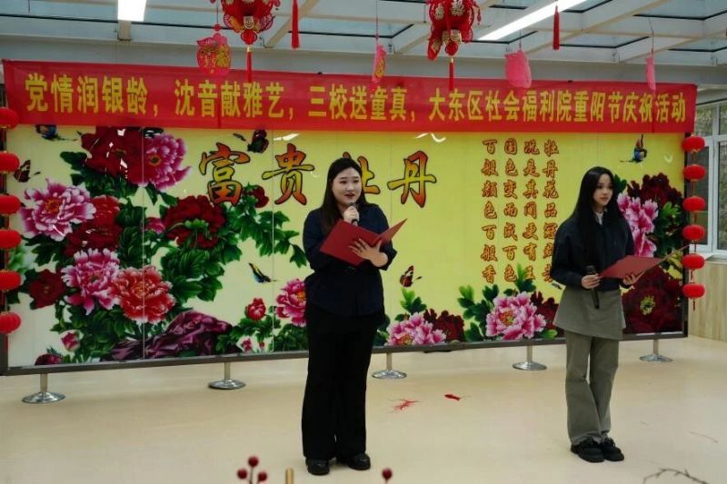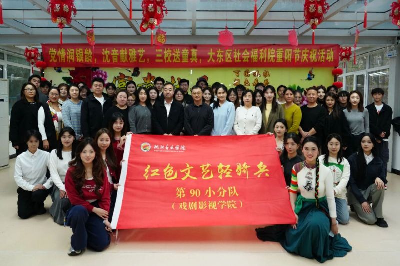 为深入践行社会主义核心价值观,大力弘扬敬老爱老的中华民族传统美德,10月29日,在重阳节来临之际,戏剧影视学院党委“红色文艺轻骑兵”小分队走进沈阳市大东区社会福利院,以歌曲、舞蹈、乐器演奏、诗朗诵等形式,为老人们送上节日祝福与艺术关怀。