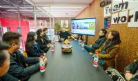 座谈会上,负责人梁斌对学院一行的到来表示热烈欢迎,从企业概况、企业文化、发展规划等方面作了详细介绍,帮助师生全面了解业务布局。他表示,戏剧影视文学系、影视摄影与制作系的专业方向,与公司的人才需求高度契合,期待未来能全方位深度合作,推动产教融合向纵深发展。