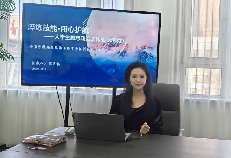会上,宋天棋以《淬炼技能·用心护航——大学生思想政治工作的心理赋能》为题,从培训概览、核心模块、学习感悟及工作设想四个维度展开汇报。